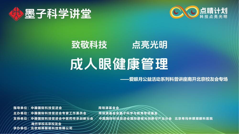 2025年6月25日,在中國國際科技促進(jìn)會(huì)和周培源基金會(huì)的指導(dǎo)下,主題為“致敬科技 點(diǎn)亮光明”的愛眼月公益科普講座活動(dòng)首次走進(jìn)南開北京校友會(huì),為在京的南開校友及其家人提供眼健康服務(wù)。