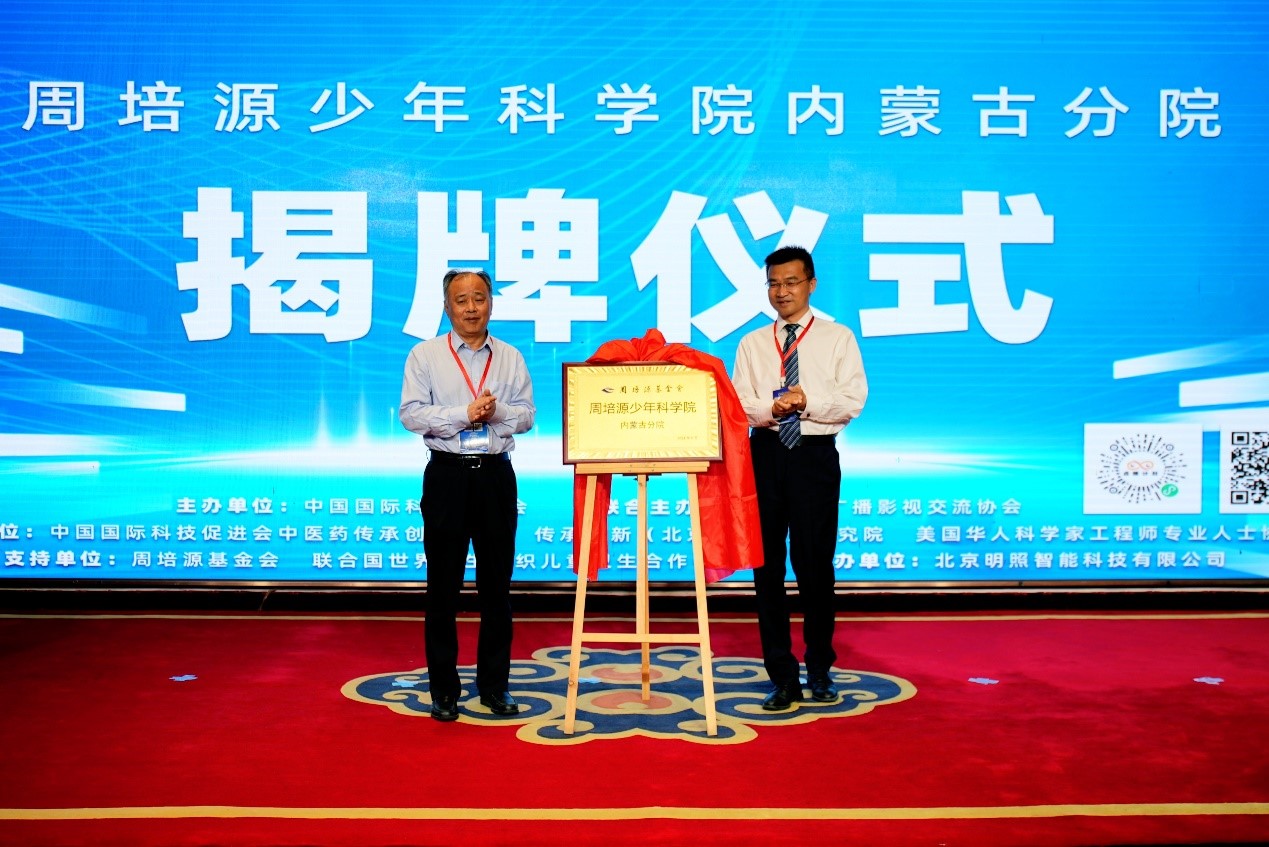 周培源基金會常務副理事長孟慶國先生及中國國際科技促進會常務理事崔志國先生在會議期間共同為周培源少年科學院內蒙古分院揭牌。