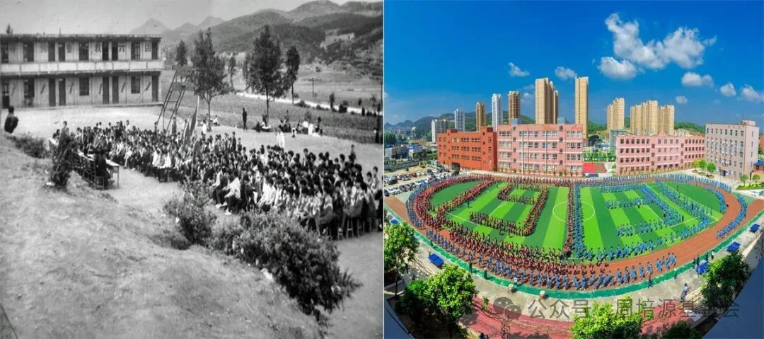 臺上的背景屏幕上,一幅幅新舊對比的照片無聲訴說著巨變,昔日低矮的校舍與今日寬敞的教學樓交錯,曾經(jīng)泥濘的操場與眼下標準的塑膠跑道疊映。這一切,臺下的九三同仁們看得真切,也記得深刻。