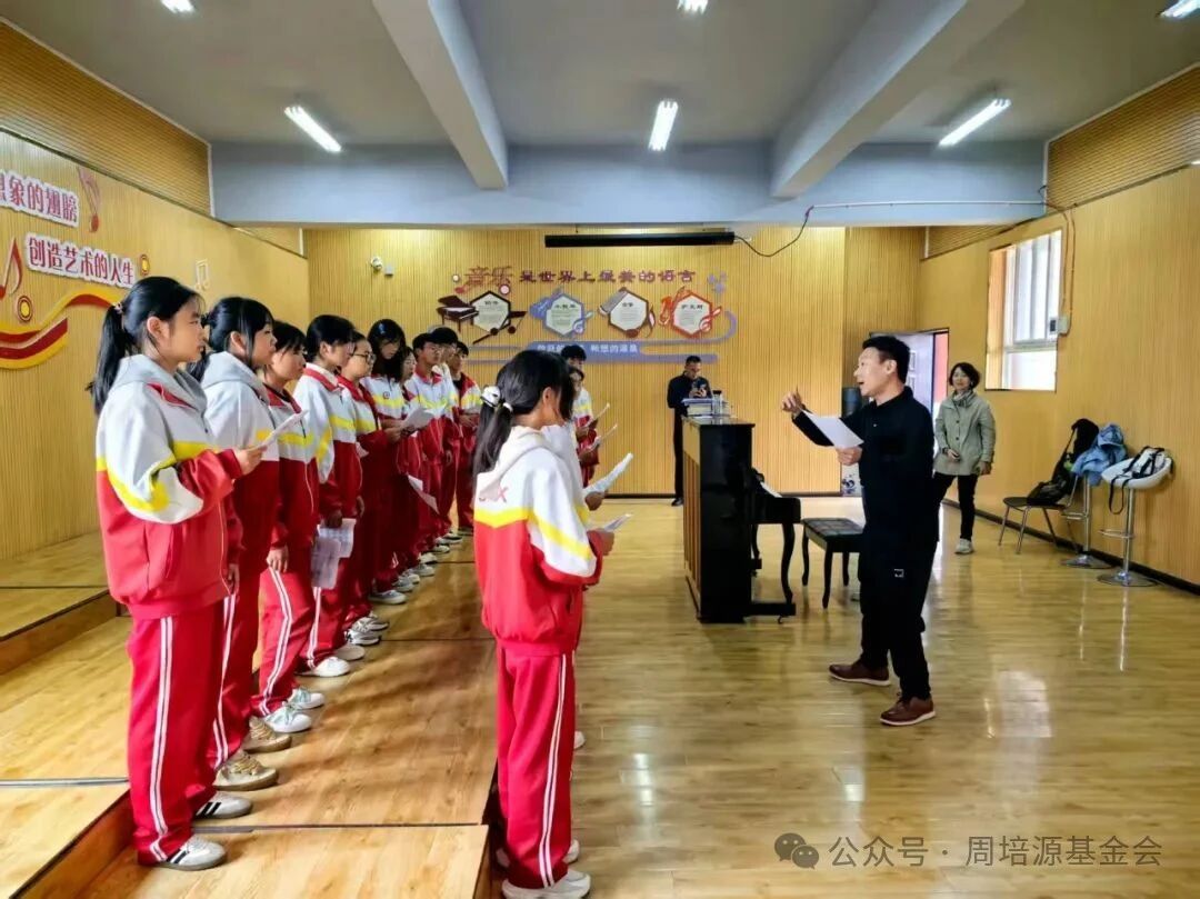“再來一遍!手臂要伸直,眼神要跟上!”過去幾個月里,校園的清晨總被排練的音樂聲點亮。音樂教室里,選拔領(lǐng)唱時,王可馨憑借清亮嗓音脫穎而出,肩頭扛起“侗鄉(xiāng)的人民聲聲把歌唱”的責任。專家專程指導,叮囑她“要唱出山水間的靈氣”,老師逐字逐句教用氣技巧,讓歌聲“像梯田里的風般舒展”,她常練到嗓子發(fā)啞,含潤喉糖反復打磨,只為音符裹著“鄉(xiāng)村的質(zhì)樸與熱忱”。合唱團指導老師張老師的嗓音已略帶沙啞,但仍不厭其煩地糾正著同學們的每一個音準。合唱講究默契,為讓和聲如流水交融,孩子們把和弦拆成單音練,節(jié)奏卡不準就跟節(jié)拍器磨到準為止。暑假里,大家在放棄假期,在學校排練不停歇。楊梓涵被委以“唱給共產(chǎn)黨”,老師說“要唱出骨子里的敬意”,他便一遍遍琢磨“這是心聲,不是普通歌詞,有些歌唱出的,比旋律更重”。卯思鴻記得老師排練時細心教導的每個聲音和動作,每當練得很累時,一想到要站北京臺上演出,就覺一切都值得的。瞬間又活力滿滿投入練習。他們深知,腳下翻飛的舞步,喉間躍動的音符,不僅是藝術(shù),更是跨越千山萬水的對話與感恩的回答。