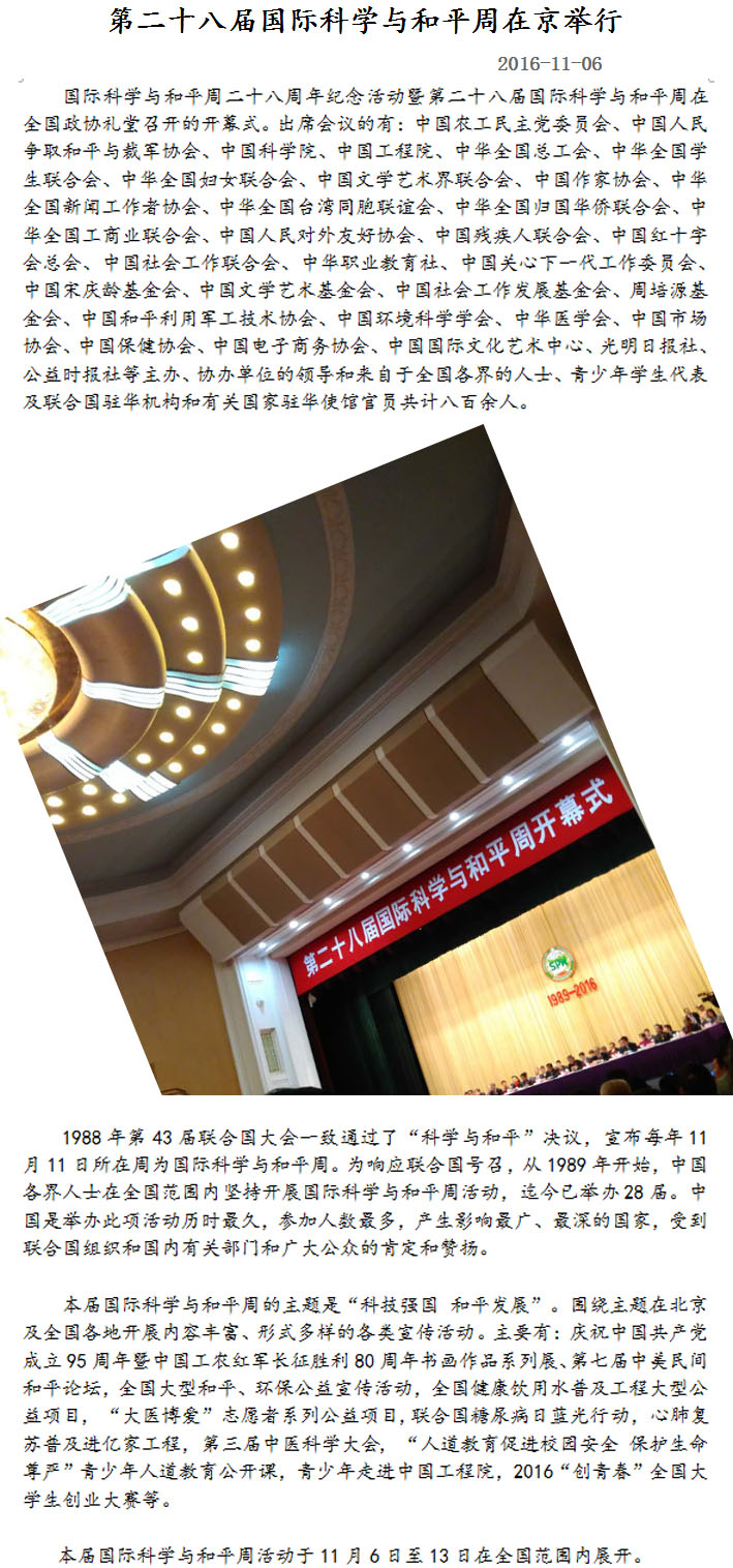 第二十八屆國際科學(xué)與和平周活動
