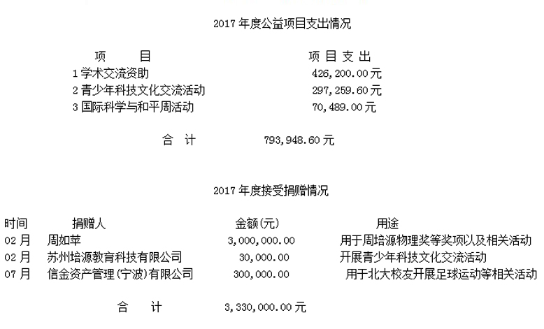 2017年度公益項(xiàng)目支出及接受捐贈(zèng)情況